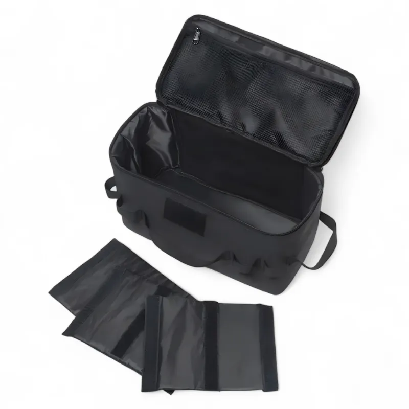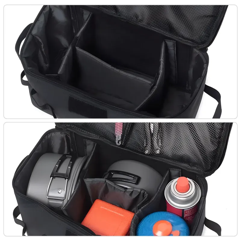 Flere rom gir enkelt plass til verktøy, gass, bestikk og kokekar. Hvert element holder seg på plass, så du slipper å rote rundt.