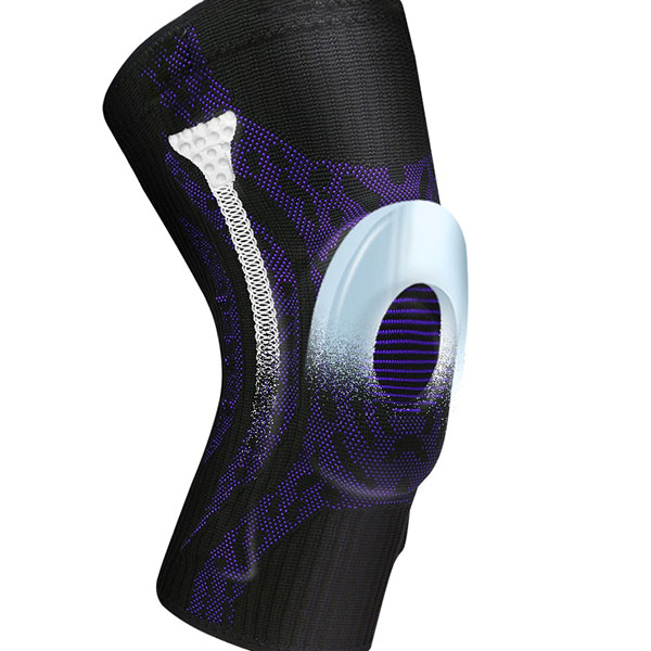 Denne polstrede knebeskytteren har dobbelt beskyttelse. Fiskeskjellfjær avlaster trykket på kneet, og den tykke puten beskytter menisken. Mykt neoprenmateriale med knebufferholder holder kneet varmt og smører leddene. I tillegg forhindrer den unike veveteknologien i poplitealfossa på begge sider av ribbenstøtten skader.