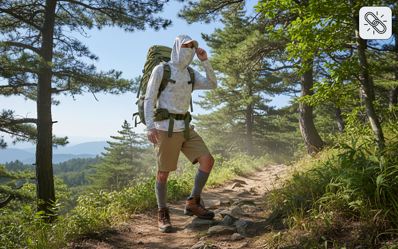 Ansiktsmaske og hette gir pålitelig UV-beskyttelse. Nyt lange timer utendørs mens du reduserer risikoen for solbrenthet.