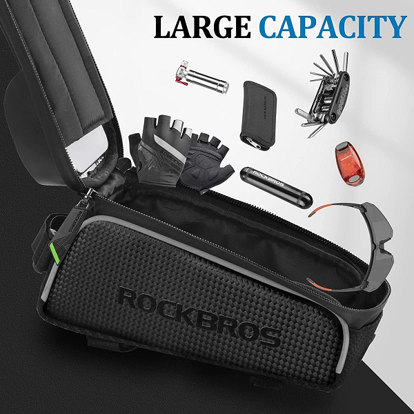 Vår Mobildeksel fungerer også som en vanlig sykkelveske. Den har et romslig rom som trygt holder dine nødvendigheter som nøkler, lommebøker, dokumenter og annet utstyr. Den er enkel å åpne og lukke på farten med dobbelt glidelås. For dobbelt beskyttelse av dine eiendeler kan du bruke ekstra regntrekk, som sørger for at vann ikke trenger inn i vesken og beskytter eiendelene dine mot regndråper og fuktighet.