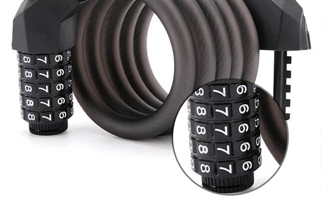 Denne sykkellåsen har en 5-sifret passordkode. Takket være denne funksjonen reduseres risikoen for tyveri betydelig. Det sterke materialet gjør kjedet vårt motstandsdyktig mot tøffe værforhold og slag.