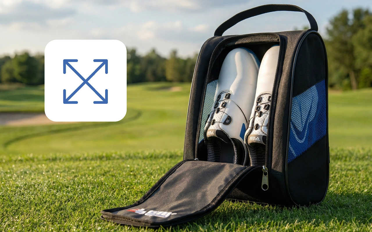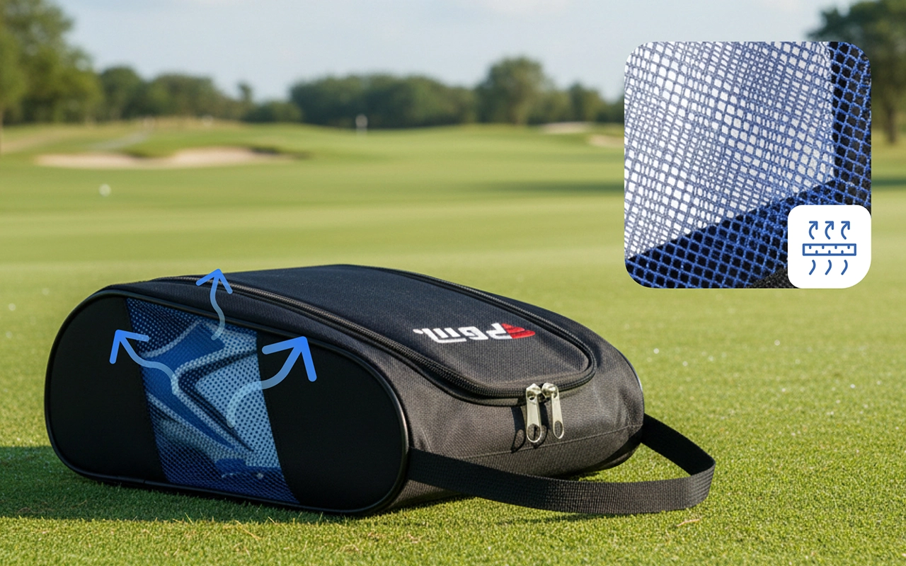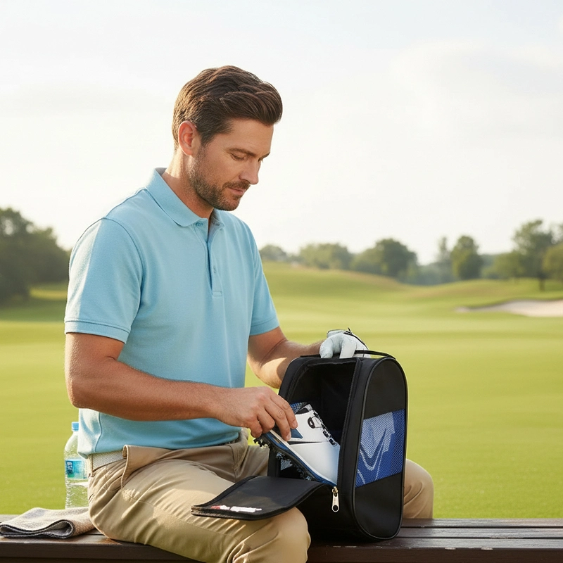 Denne skoposen holder golfskoene mine friske og tørre mellom spillene. Nettsidene er fantastiske, og jeg elsker hvor lett det er å pakke alt sammen.