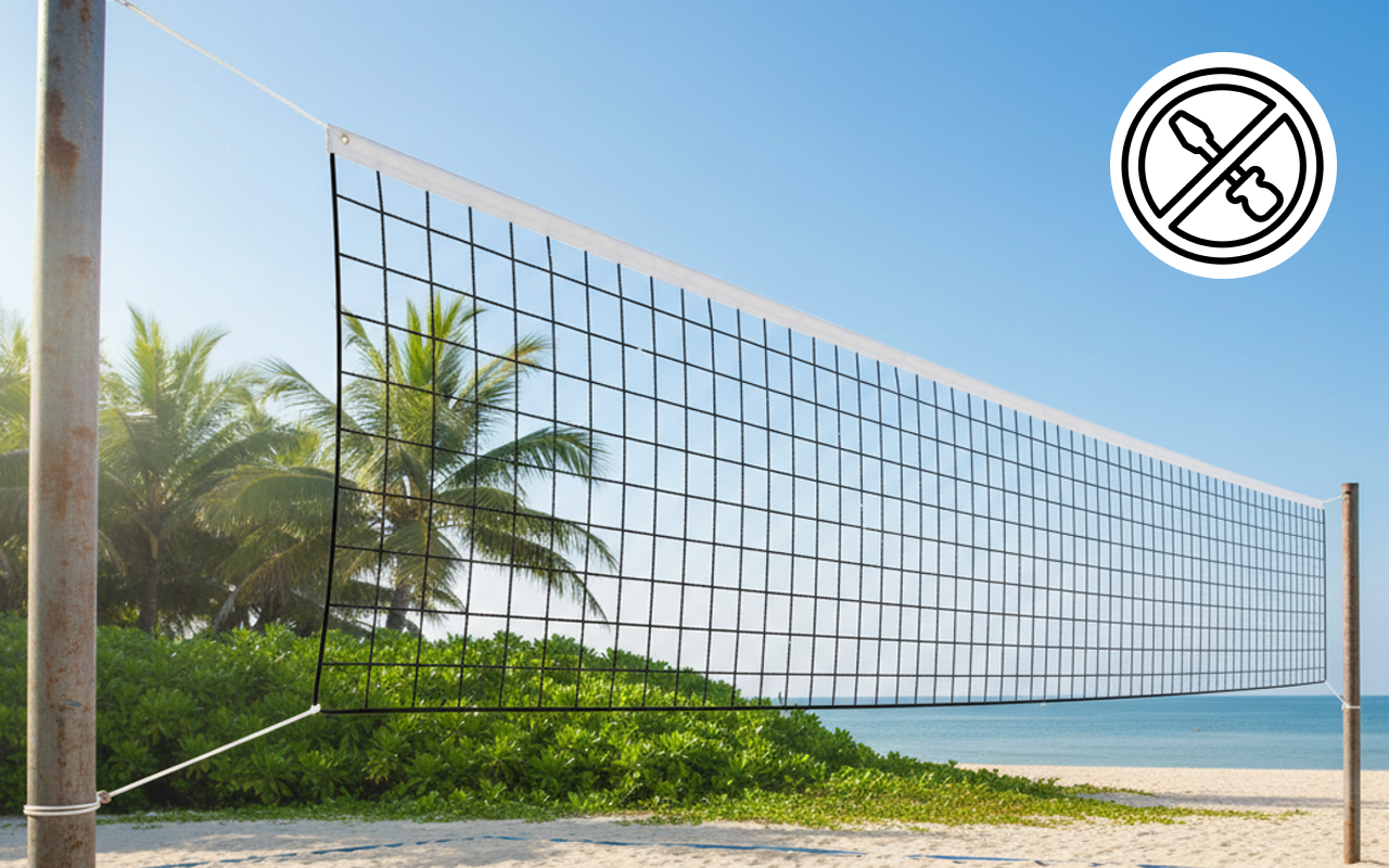 Installer Threo Professional Volleyball Net enkelt uten spesialverktøy. Nyt rask montering slik at du kan fokusere på spillet med en gang.