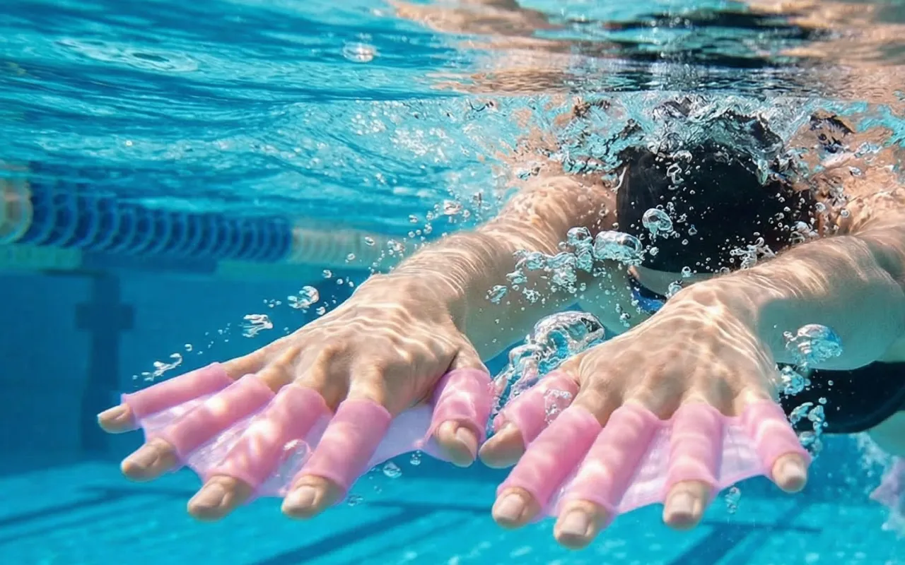 Jeg er i femtiårene og bruker disse svømmehanskene med svømmehud for leddvennlig trening. De hjelper meg å bevege meg mykt, bygge styrke, og jeg gleder meg faktisk til svømmedagene nå.