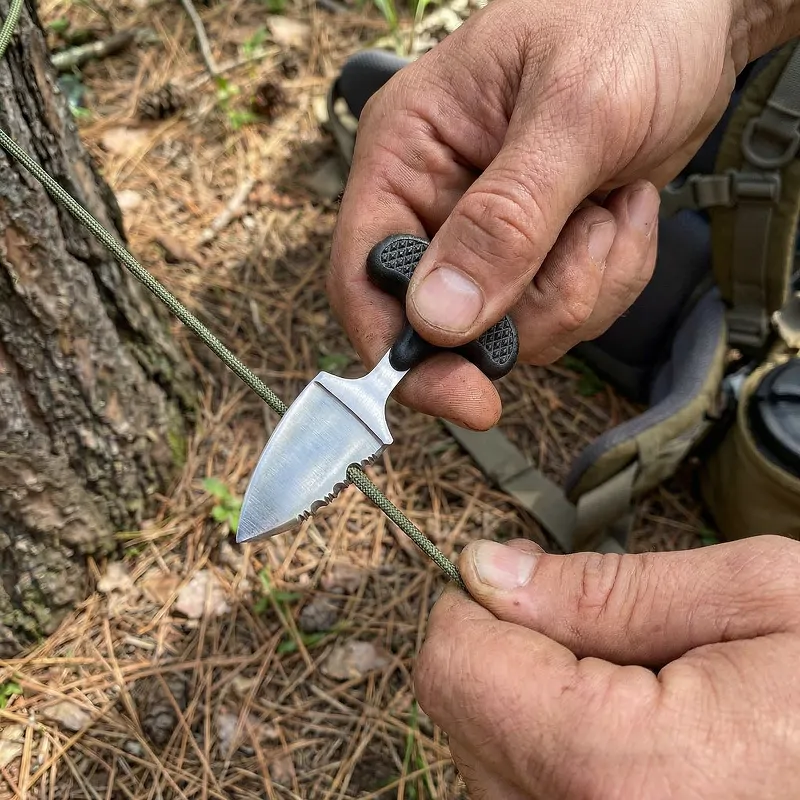 Jeg har denne turkniven i bilen for fotturer med mannen min. Den trekkes raskt, kutter fallskjermsnor rent, og håndtaket sklir aldri, selv med svette hender.