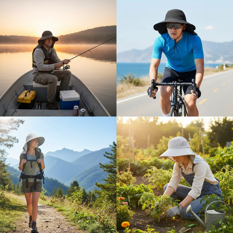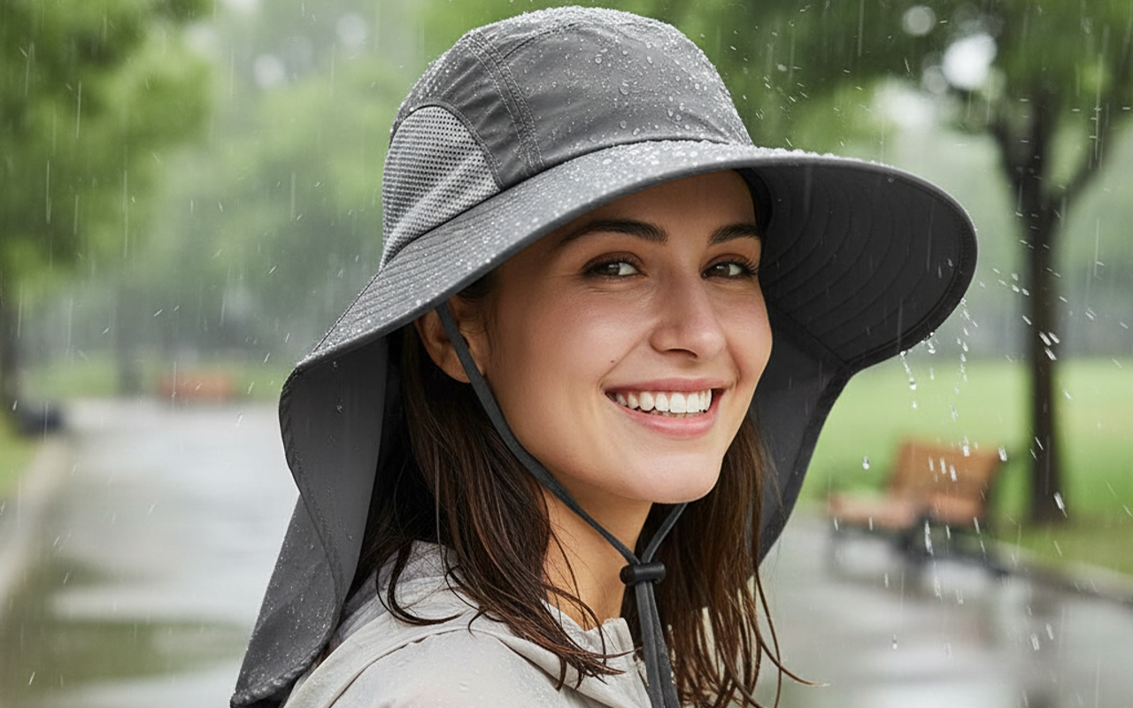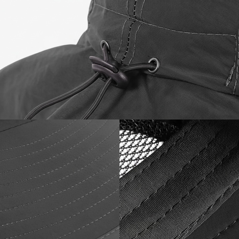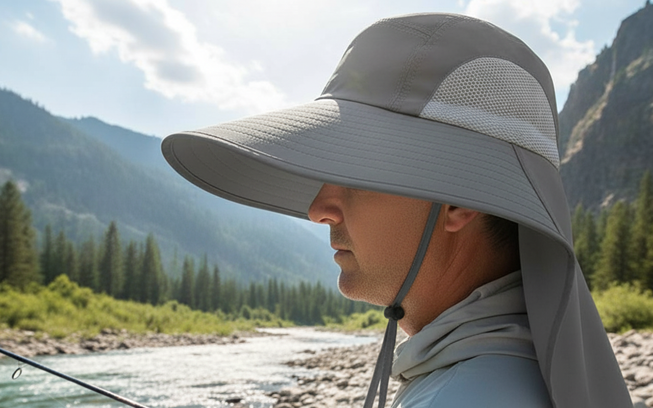Bredbremmet stoff hjelper til med å blokkere sterke solstråler og unngå solbrenthet. Den forlengede klaffen gir ekstra dekning for nakke og ører.