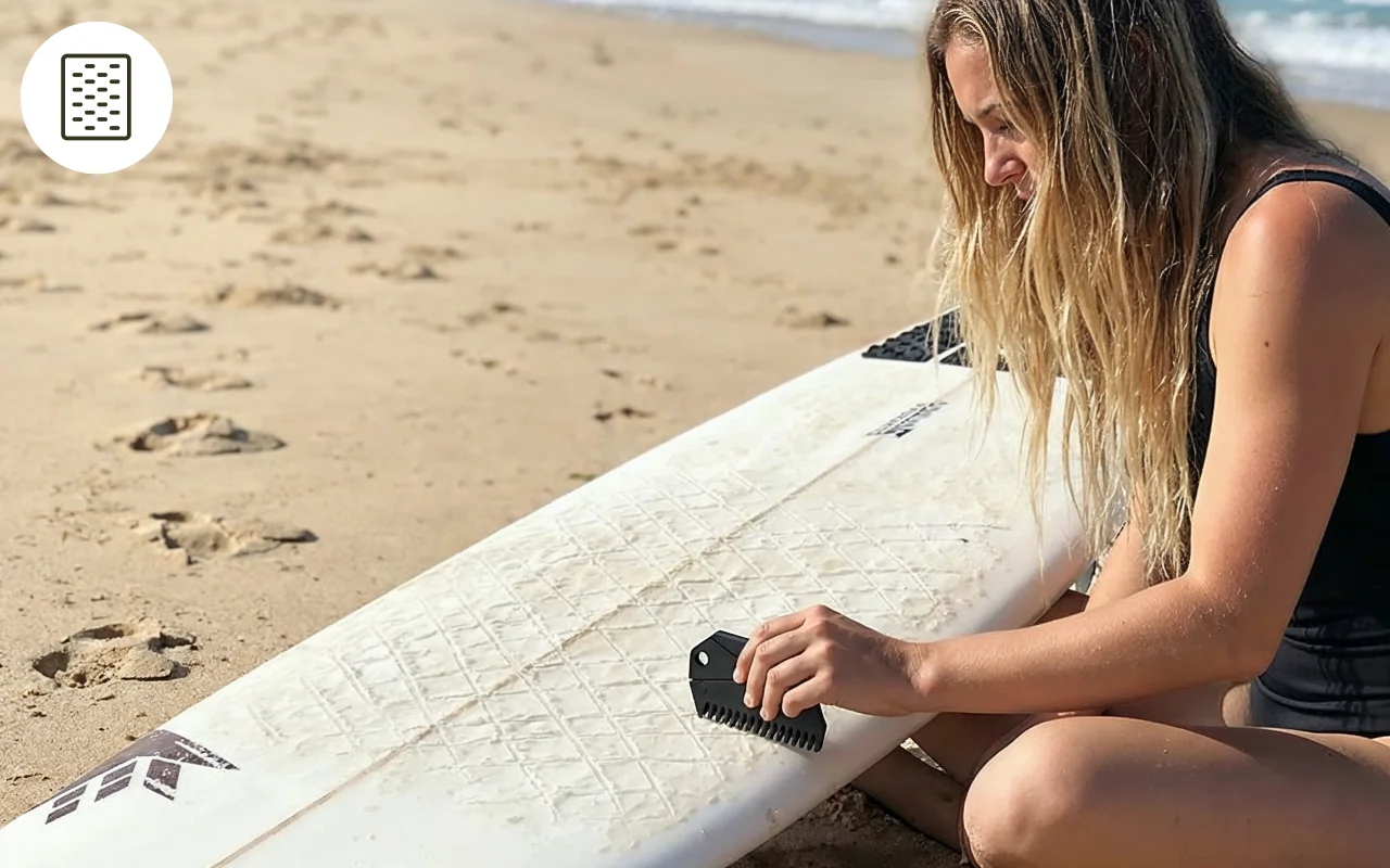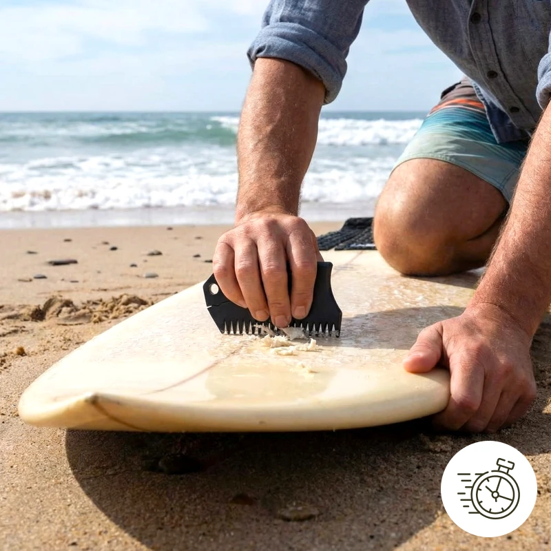 Ved hver surfetur tar jeg med denne skrapen. Den er fantastisk for rask fjerning av voks før jeg padler ut. Gjør alt mye raskere!