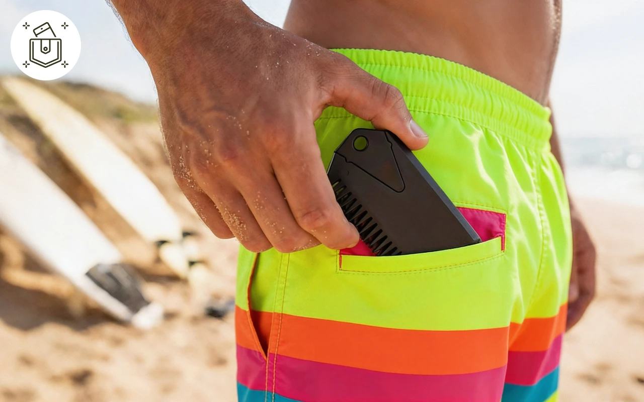 Liten størrelse gjør at den enkelt får plass i shortsen for rask tilgang alltid. Gå aldri glipp av et øyeblikk ved havet fordi verktøyet ditt er rett ved din side.