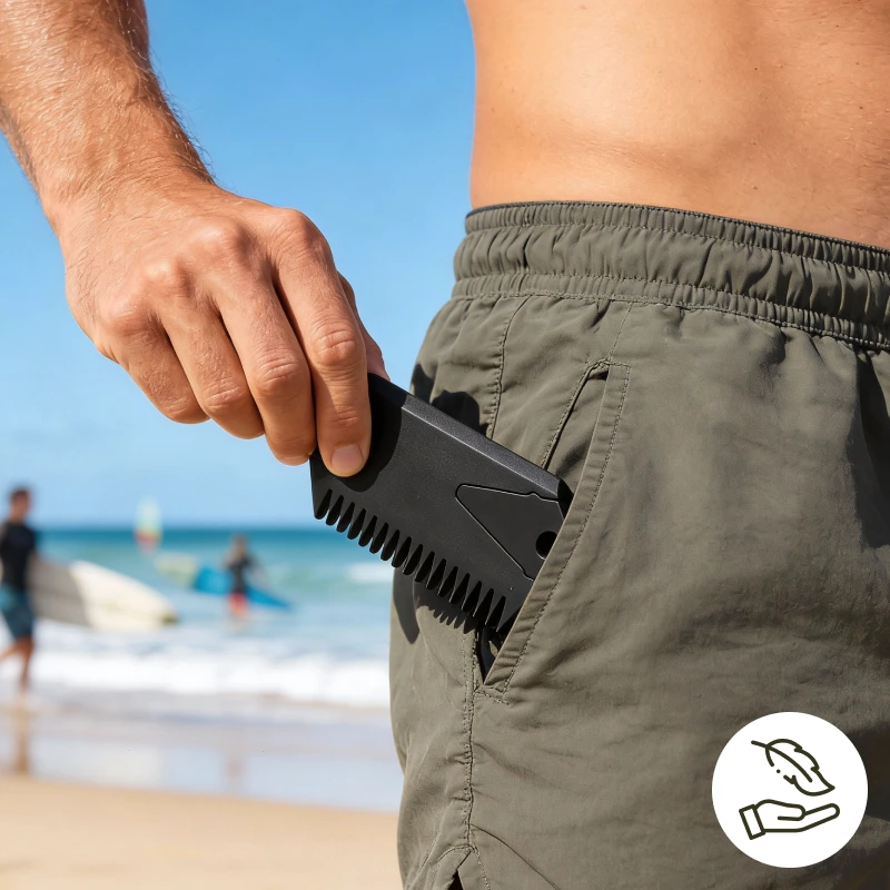Fjern gammel voks raskt mens hendene forblir rene hver gang. Nyt glattere turer siden friske overflater gir bedre grep uten styr. Lett konstruksjon glir lett ned i lommer eller bag for reise. Slitesterk plast gir deg varig hjelp på stranden.