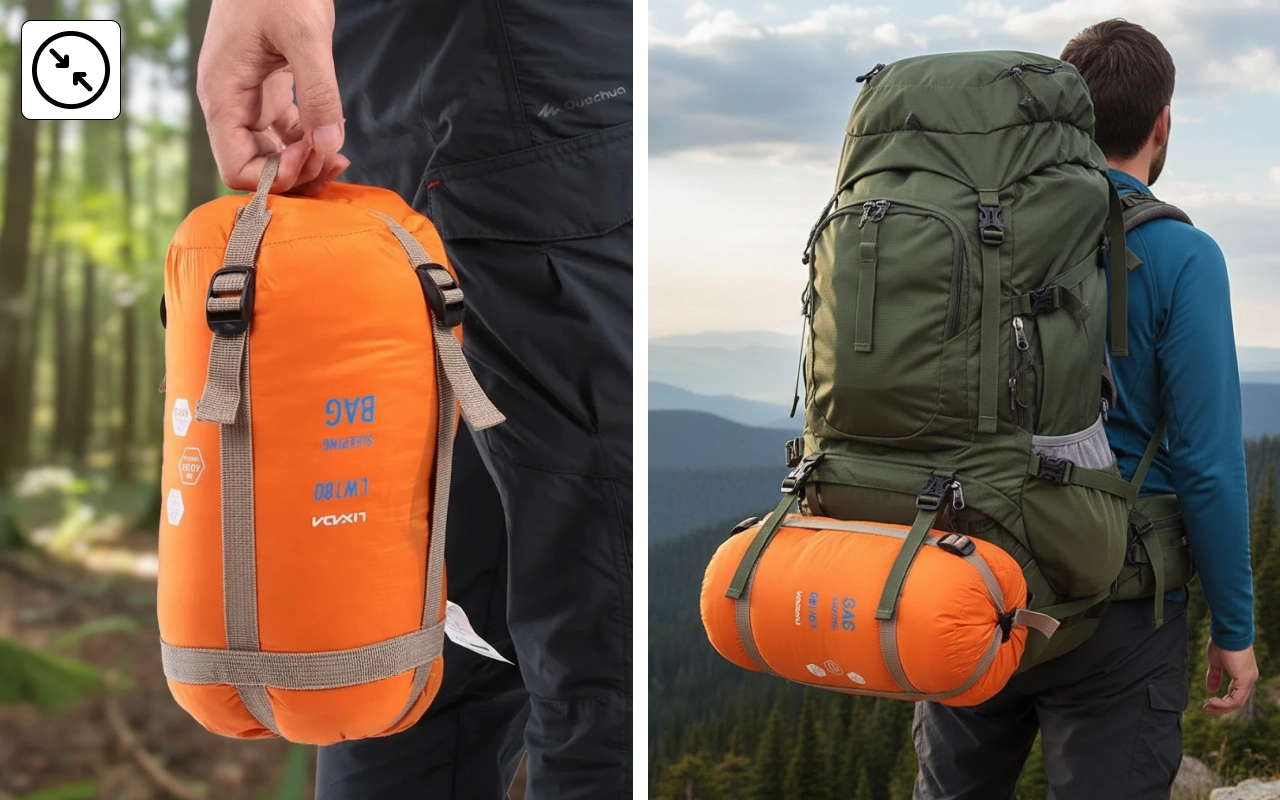 Ta med Threo soveposen overalt ved hjelp av kompresjonsposen. Den passer lett i ryggsekker eller kan henges på utstyret ditt.