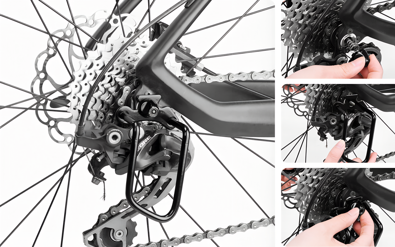 Threo girbeskyttelse skjermer sårbare komponenter og reduserer reparasjonskostnader. Den absorberer støt for å forhindre bøying og skjevstilling. Jevnt girskifte opprettholdes selv i ulendt terreng. Sykkelopplevelsen din blir bedre med dette tilskuddet til sykkelen.