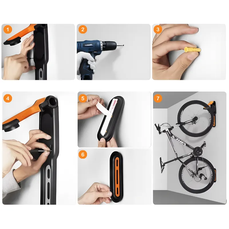 Denne sykkelholderen for vegg er bygget for å tåle tunge vekter uten å bøye seg. Den holder seg stabil på alle underlag, og sikrer langvarig og sikker bruk.