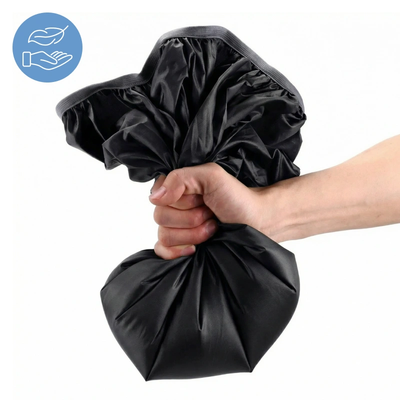Den elastiske kanten passer raskt på sekker uten styr eller mas. Trekk det over sekken på sekunder før du drar.