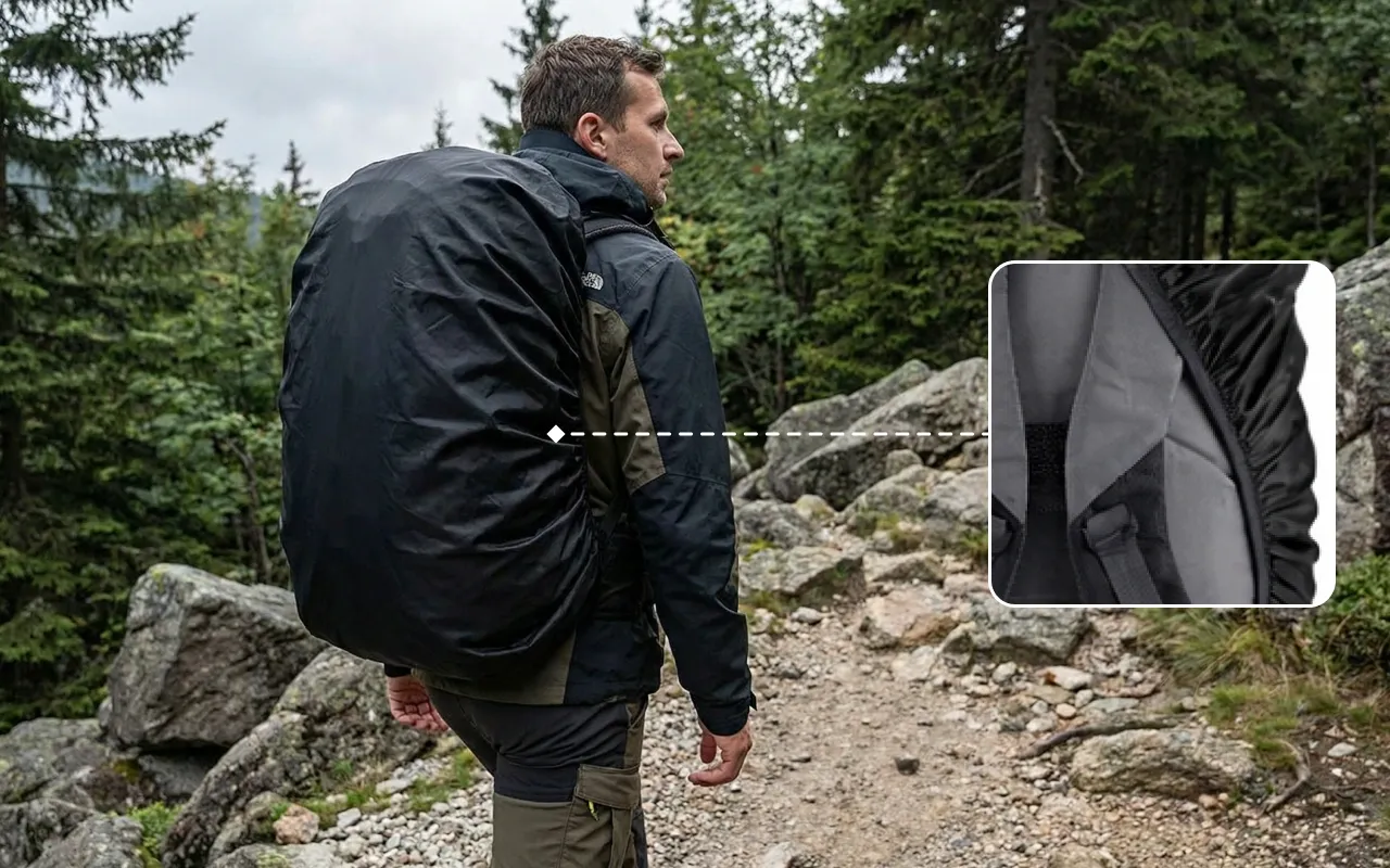 Vi var på fjelltur da det begynte å øsregne, men tingene mine holdt seg trygge og tørre, takket være dette. Tar bare sekunder å trekke over sekken.