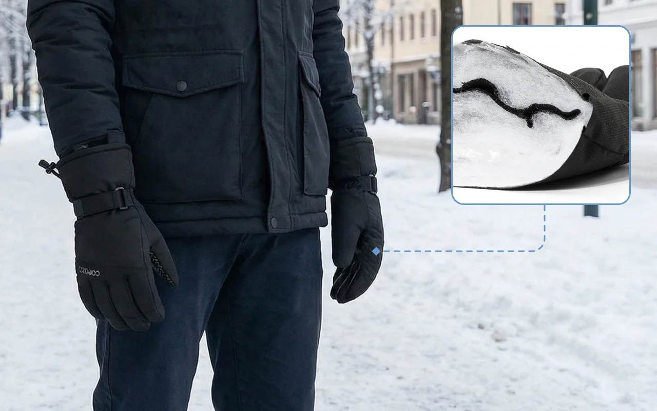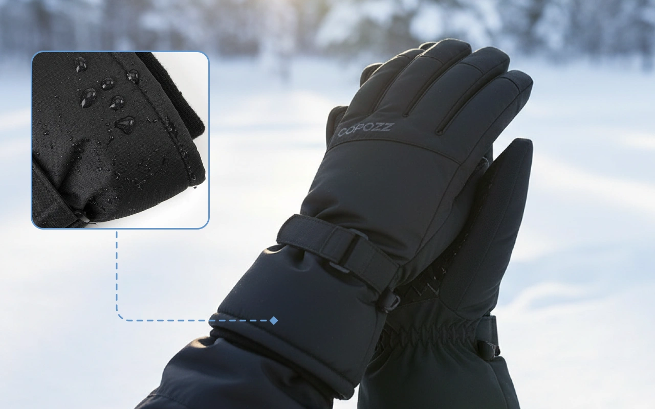Kaldt vær kan raskt ødelegge utendørs moro. Threo skihansker bruker smarte stoffer for å holde hver finger varm. Tilpassede håndleddsstropper hindrer snø og vind i å komme inn. Disse lar deg være ute lenger, uansett vær.