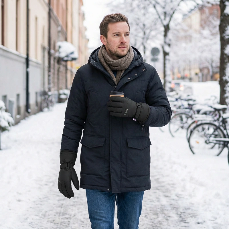 Regn eller snø trenger ikke gjennom det sterke ytterskallet. Flere lag holder hendene tørre og blokkerer iskalde vinder.