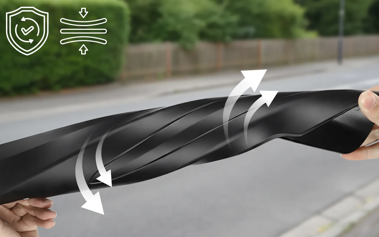 Threo-skjermene dekker rundt hjulene og blokkerer effektivt vann og gjørme. Dette sikrer at minimalt med sprut når deg, så hver tur blir mer behagelig.
