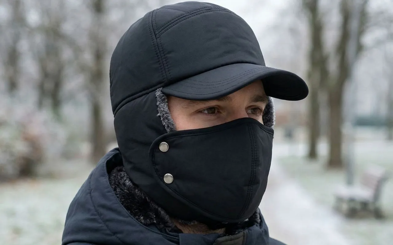 winter baseball hat, warm baseball hat, baseball cap for winter, hat with face cover, face mask hat