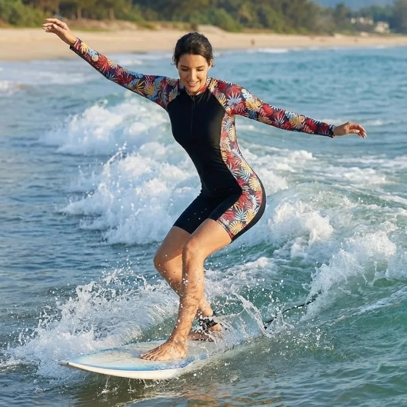 Drakten er myk og holder meg kjølig, selv når jeg løper rundt på stranden. De tettsittende ermene er supre for bevegelighet.