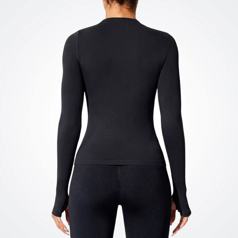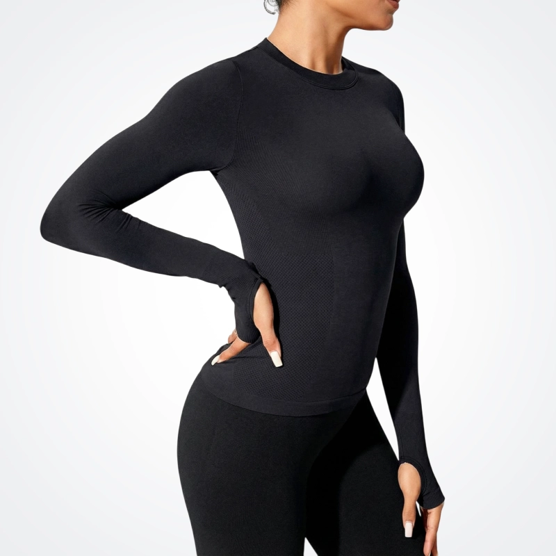 Lange ermer beskytter armene mot solen eller røft treningsutstyr. Føl deg trygg og tildekket i hver positur eller bevegelse, både inne og ute.