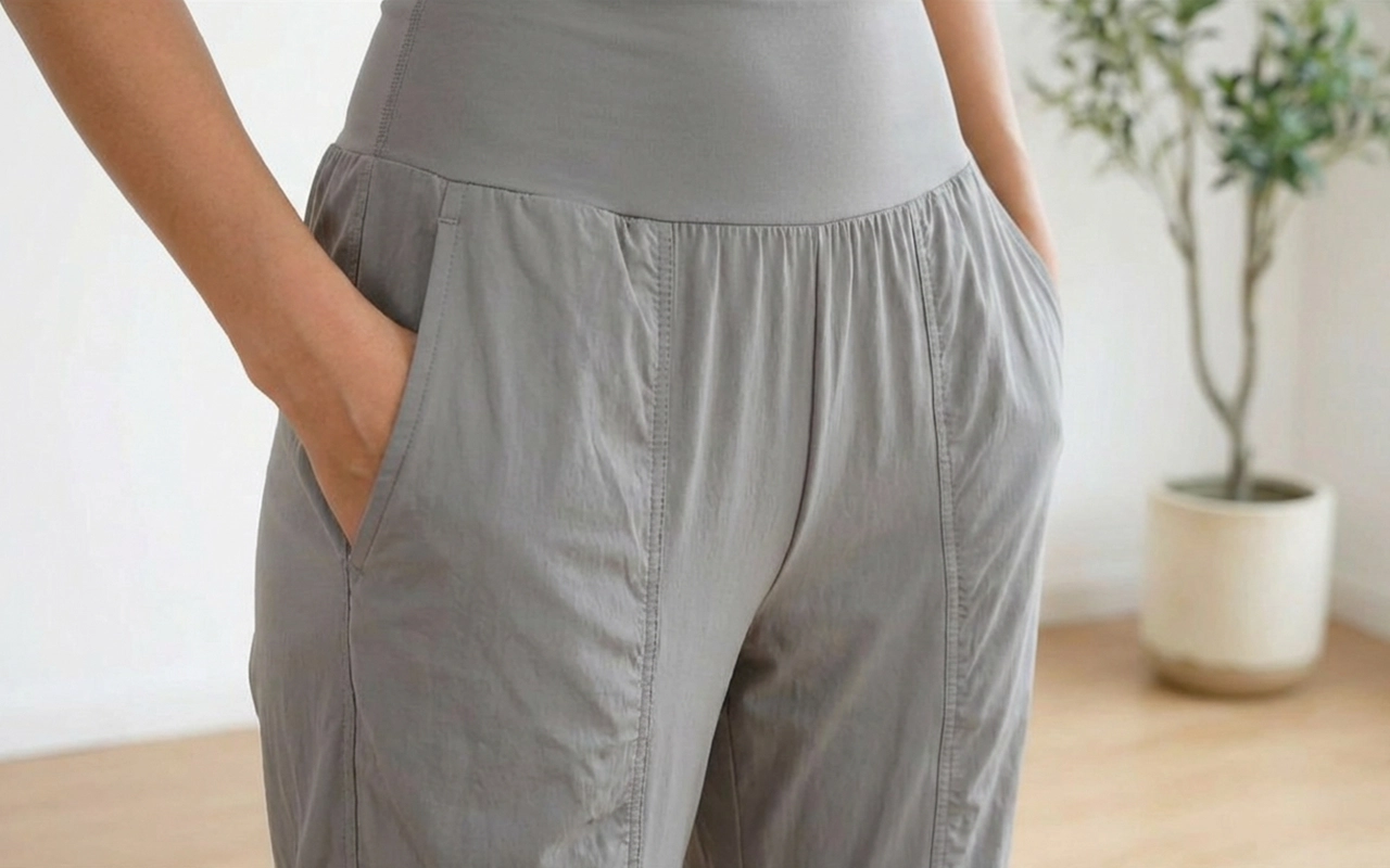 Som plus size-kvinne er jeg kresen på bukser. Disse faller pent, klemmer ikke magen og lar meg fortsatt strekke meg på gulvet med barna uten problem.