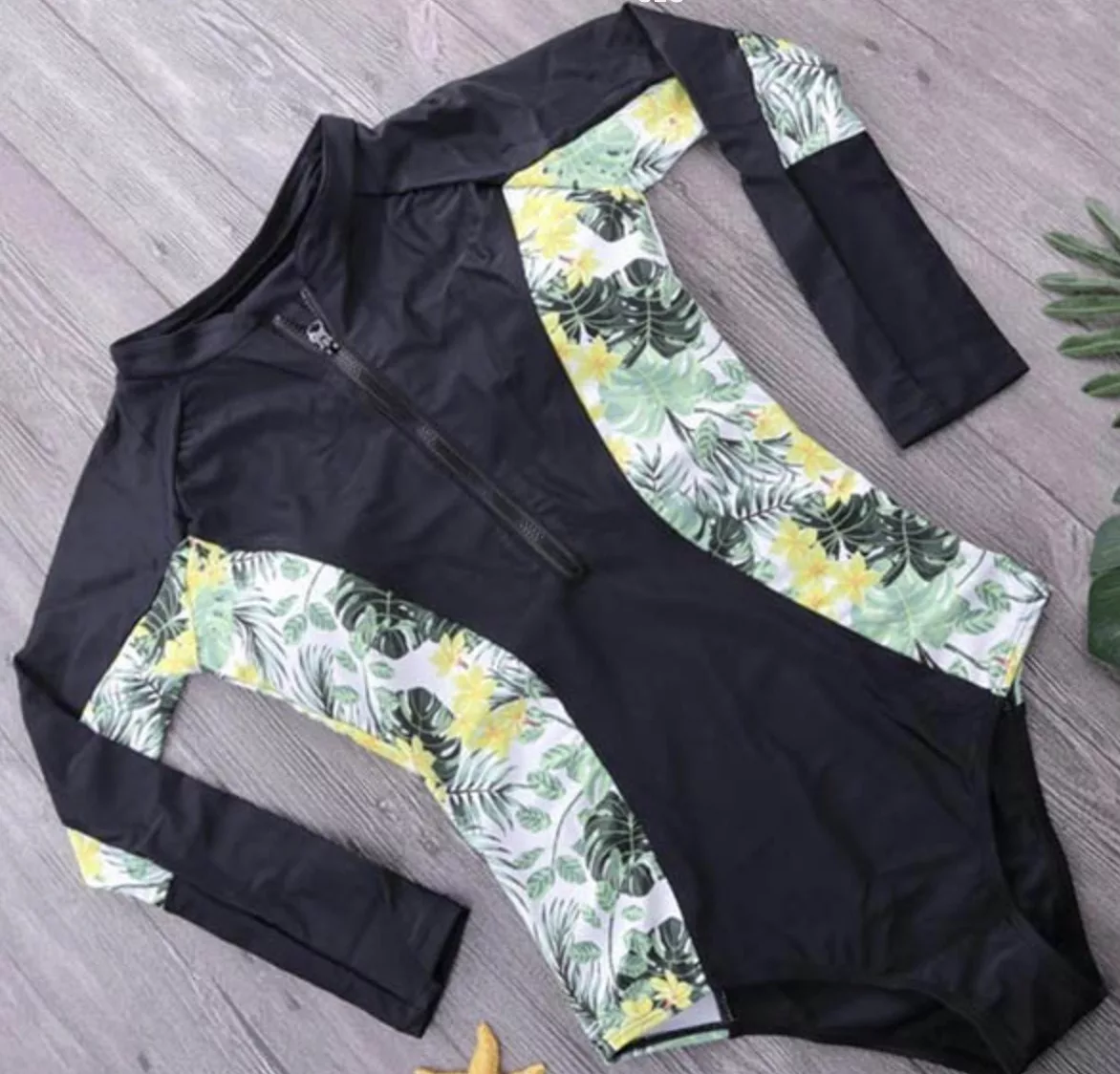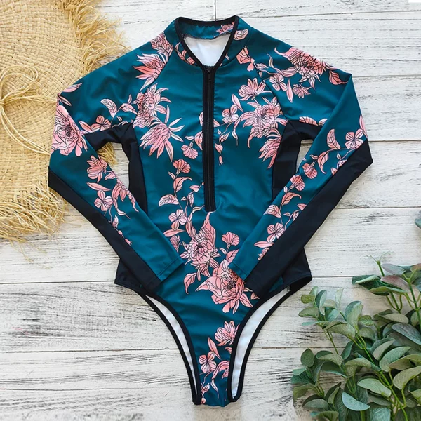 Vær helt forberedt på å nyte dine vannaktiviteter — THREO langermet badedrakt gir deg ekstra dekning! Den beskytter deg mot solbrenthet samtidig som den gir en flatterende silhuett. Den er laget av et ultrastretch materiale for optimal bevegelse i vannet og er praktisk for dekning og UV-beskyttelse. Vår badedrakt har et slankt heldekkende design i tropiske print, noe som gjør den til et utmerket valg for treningsøkter i bassenget, svømming, surfing eller dykking.