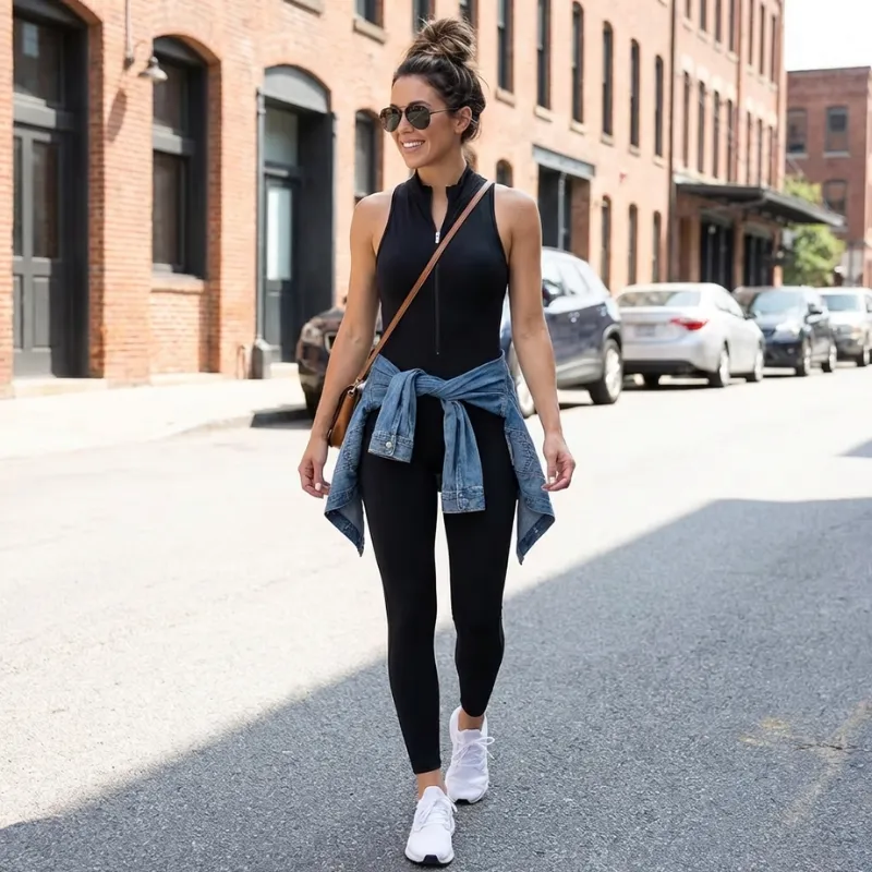 Jeg er i førtiårene og elsker hvordan denne jumpsuiten jevner ut mage og hofter. Glidelåsen lar meg styre hvor åpen fronten er, og den føles aldri tung av svette.