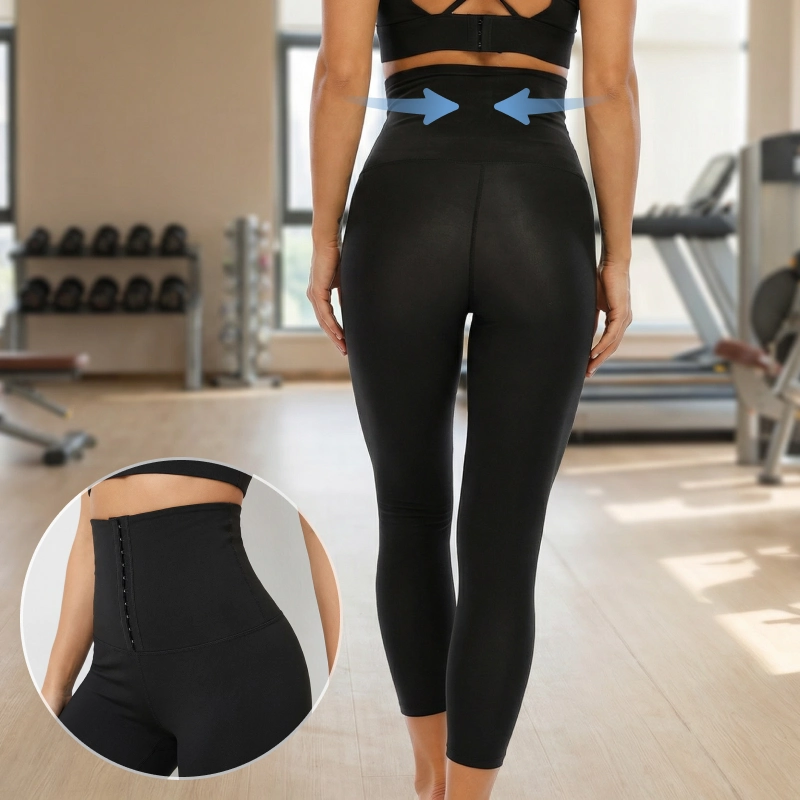 Kjøpte sauna-leggingsene etter å ha sett en annonse på nettet. Jeg er glad jeg gjorde det, for midjen ser mer tonet ut, og de er komfortable selv på lange handleturer.
