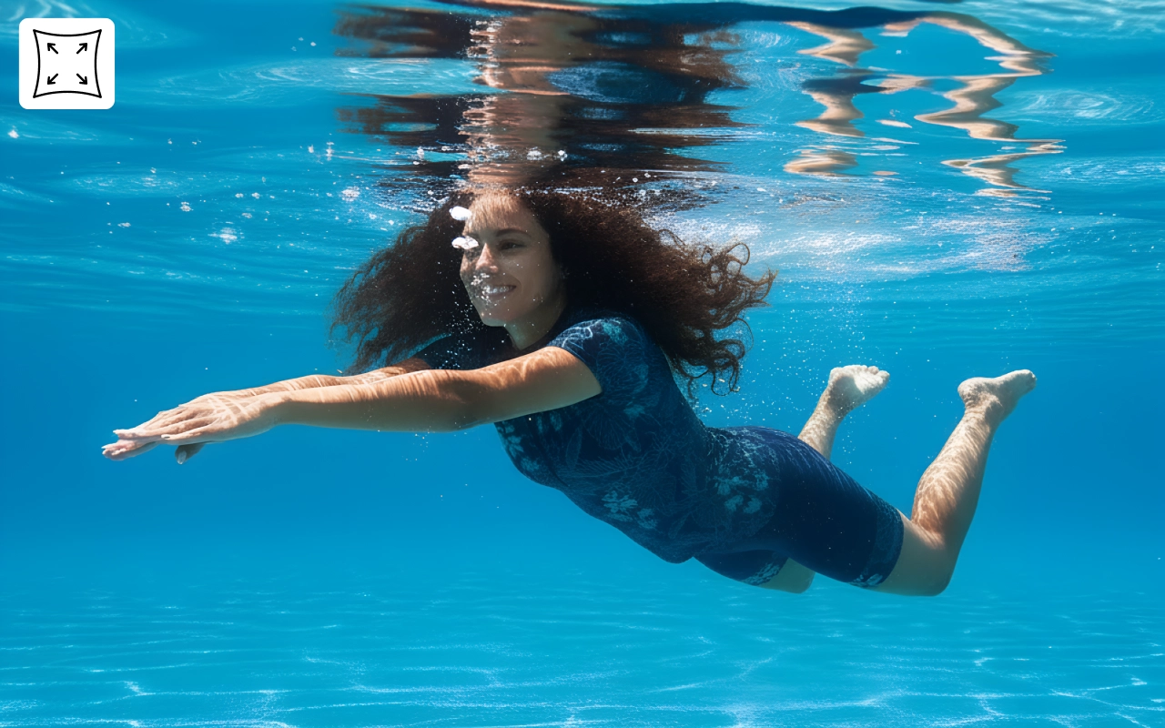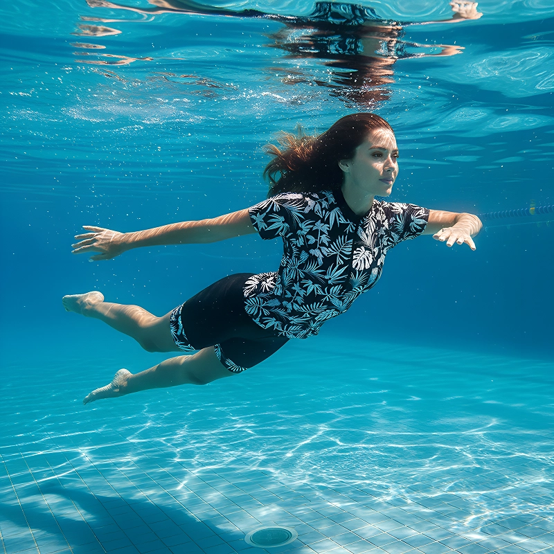 Elastisk stoff lar deg bøye deg og svømme uten problemer. Du kan dykke eller leke uten å føle deg stram eller begrenset.
