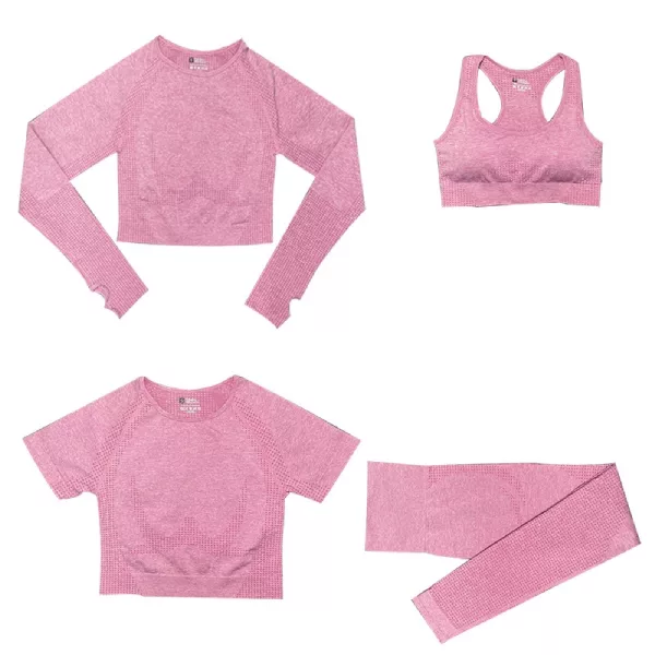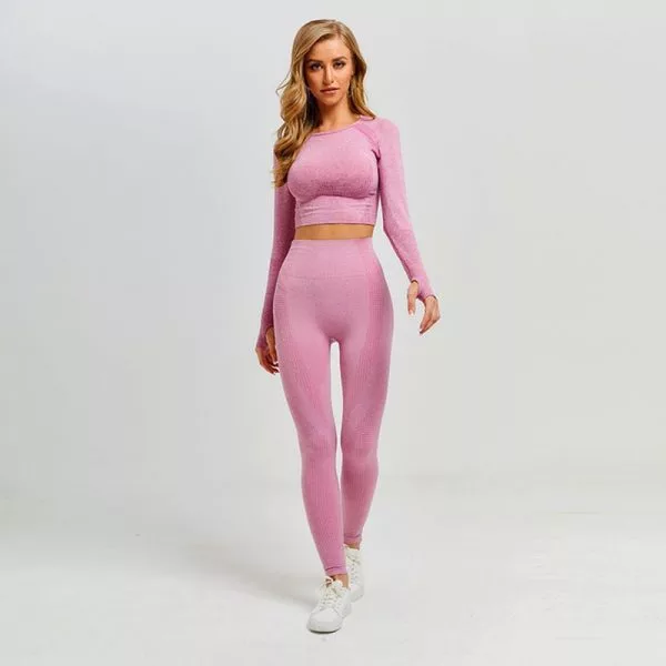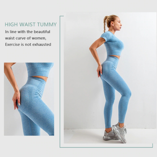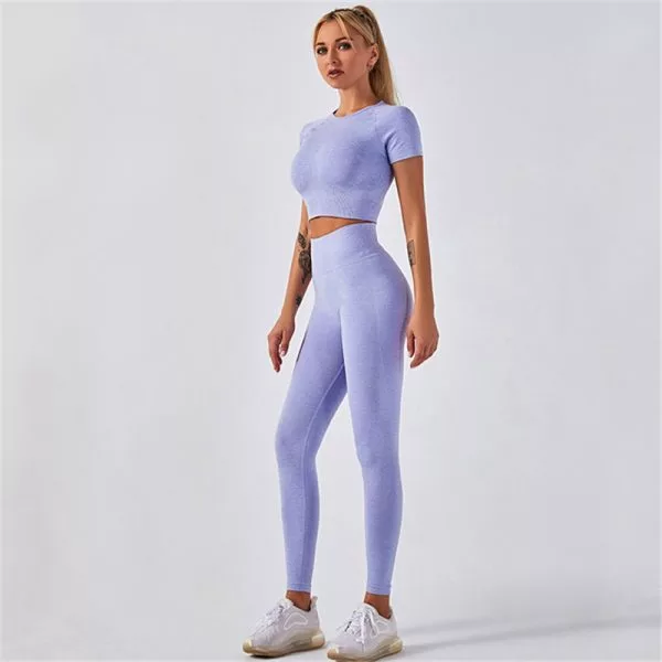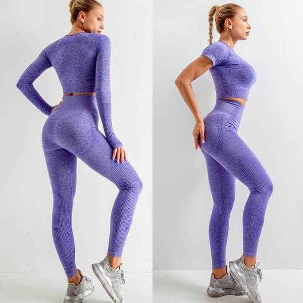 Disse høytlivde tightsene med ribbestrikket midjebånd gir god støtte og fremhever formen din med en tettsittende passform. Den attraktive og stilige toppen/t-skjorten gjør dette treningssettet mer charmende, flørtende og stilig. Enten det er på date, til hverdagsbruk eller trening, kan dette yogasettet fremheve kroppslinjene dine og få deg til å skille deg ut. Det er perfekt for gym, yoga, fitness og alle typer trening, eller til daglig bruk. Tilgjengelig i flere stilige farger.