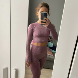 Elsker denne treningssettet! Passer perfekt og er superkomfortabelt. Stoffet er pustende, noe som lar meg holde meg kjølig under intense treningsøkter. Jeg har fått så mange komplimenter på treningssenteret. Det er nå mitt favorittantrekk for alle treningsøktene mine.